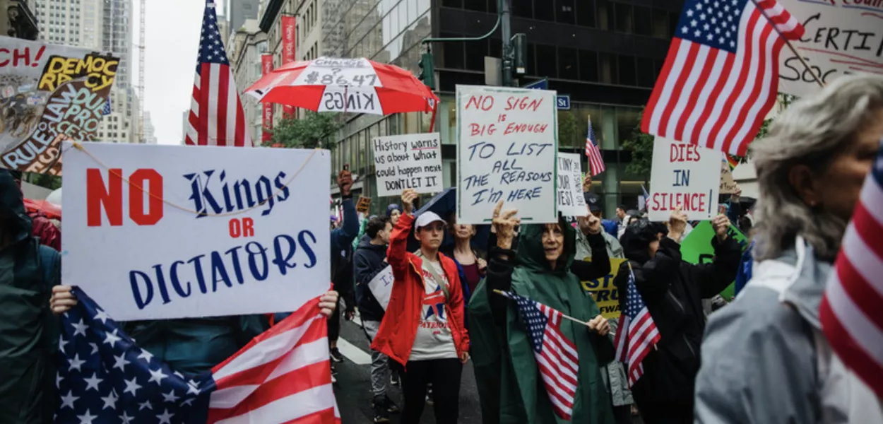 Marchas do movimento ‘No Kings’ tomaram mais de 1.500 cidades, com críticas ao autoritarismo, à política anti-imigração e aos cortes de serviços públicos